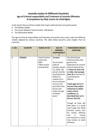 Juvenile Justice In Different Countries Age Of Criminal Responsibilit