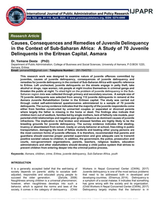 Causes Consequences And Remedies Of Juvenile Delinquency In The Cont